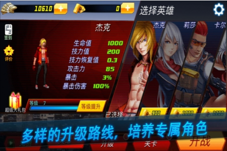 游戏里英雄多,可以解锁其他英雄,英雄有各种升级路线;