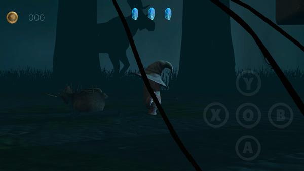3、进入游戏后,界面如图所示。左侧用于控制移动,右侧Y键可进行旋转攻击,A键实现跳跃操作,B键则是下蹲爬行功能。