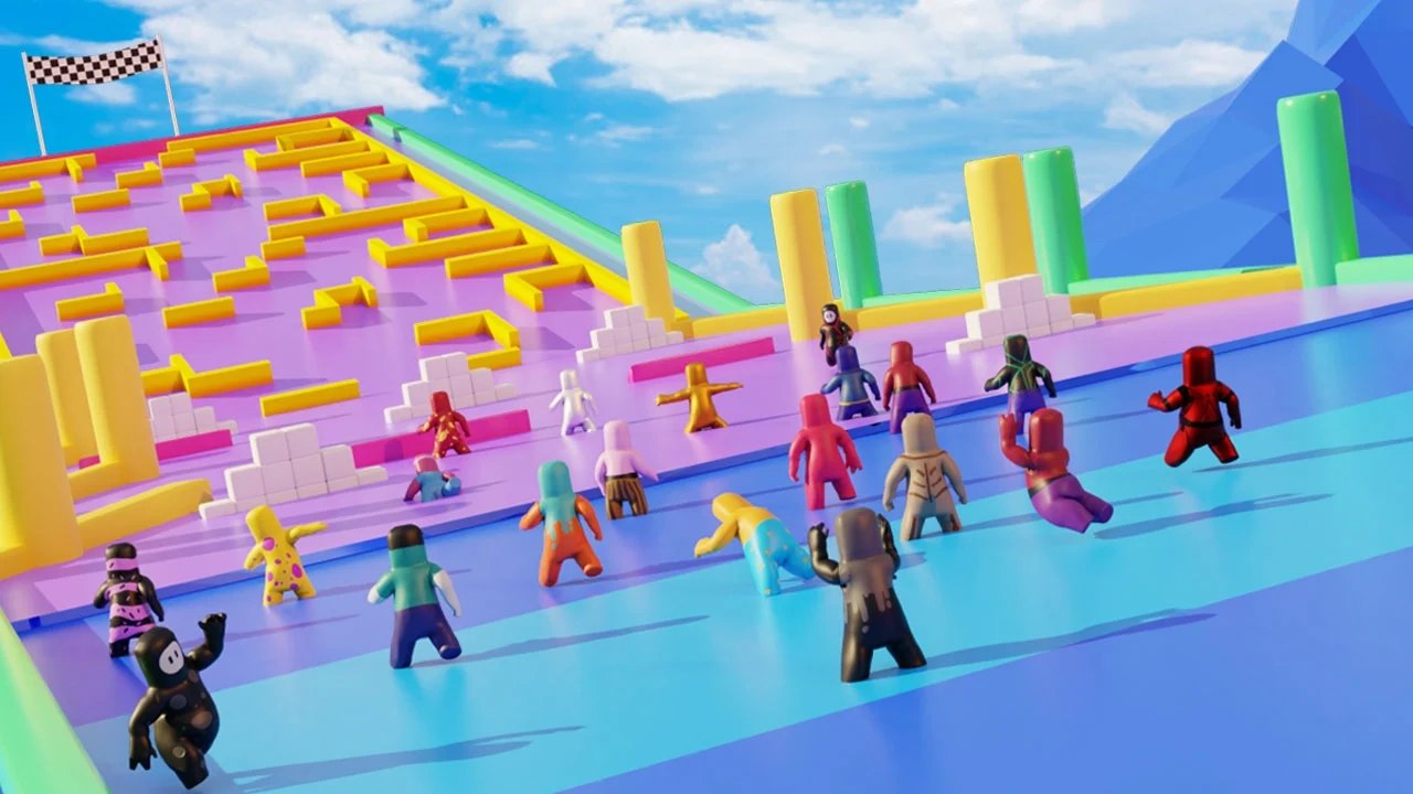 在跑步游戏中与朋友淘汰五个家伙。进行荒谬的消除,不要跌倒。