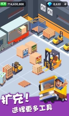 3、在手游中使用了卡通风格,玩家扮演快递公司老板的角色,可以使用许多设备。