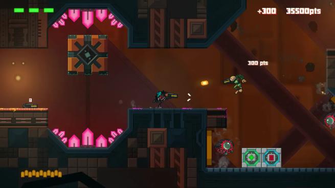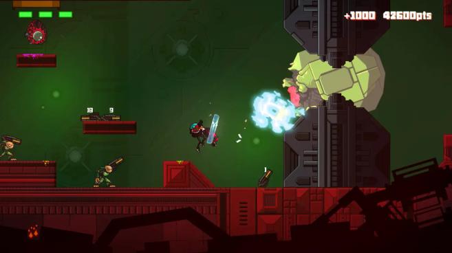 在流畅的手游设计与画面和搭配八十年代的背景音乐中,在充满机器人大军的外星飞船里。