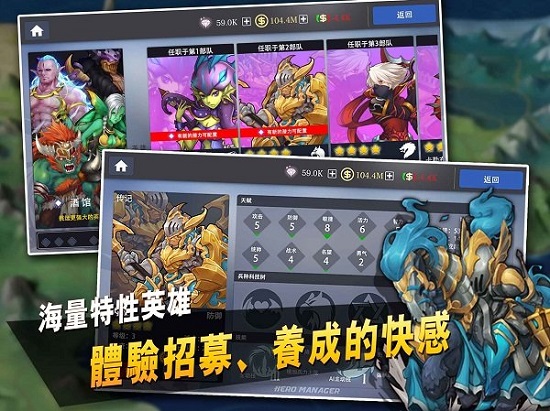 英雄经理是即时策略游戏!英雄,带上你的龙、泰坦、恶魔、半人马、精灵,吹响进军的号角吧,一款即时策略游戏,统领魔兽、人类、精灵、亡灵征战帝国,训练一只英雄无敌的部队,开创帝国史诗。