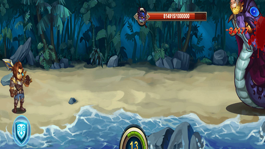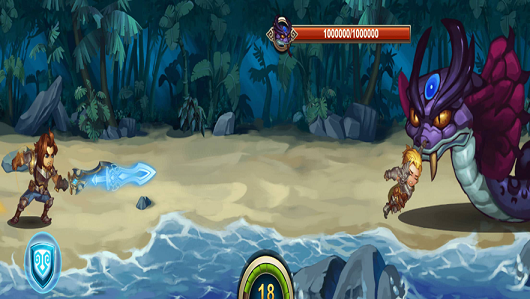 游戏中,主人公通过掷出剑气攻击蛇王,只需要在规定的时间之内射死蛇王即可拯救自己的儿子。
