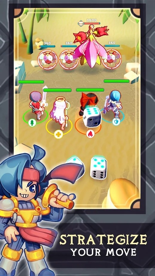 投掷骰子,并将其分配给您的英雄。观看惊人的攻击和能力的发展。明智地计划您的回合制战斗策略并取得胜利。