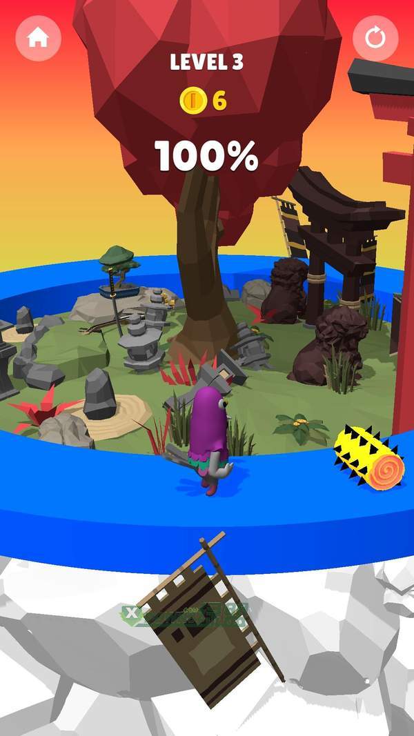 1.点击屏幕以控制您的角色越过圆圈,但不能撞到前方的障碍物;