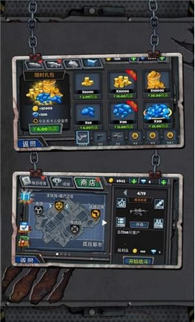 3,丰富的地图与僵尸主题相结合,控制自己的角色,开始刺激冒险,挑战不同层次,丰富的设备系统,地图将会随机出现宝箱。
