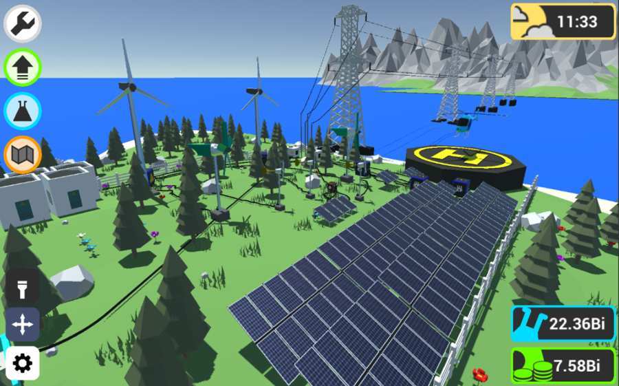 发电大亨游戏中,低模风的世界里,建立各式各样的发电装置和配套设施,进行管理;