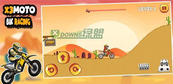 X3摩托荒野之旅作为一个超级受喜爱超级好玩的摩托赛车游戏,游戏里面玩家可以在行进的路途中不断的收集金币来购买更新的摩托车,环境超级的恶劣,你会遇到各种困难,而你要凭借自己的操作去克服它们。
