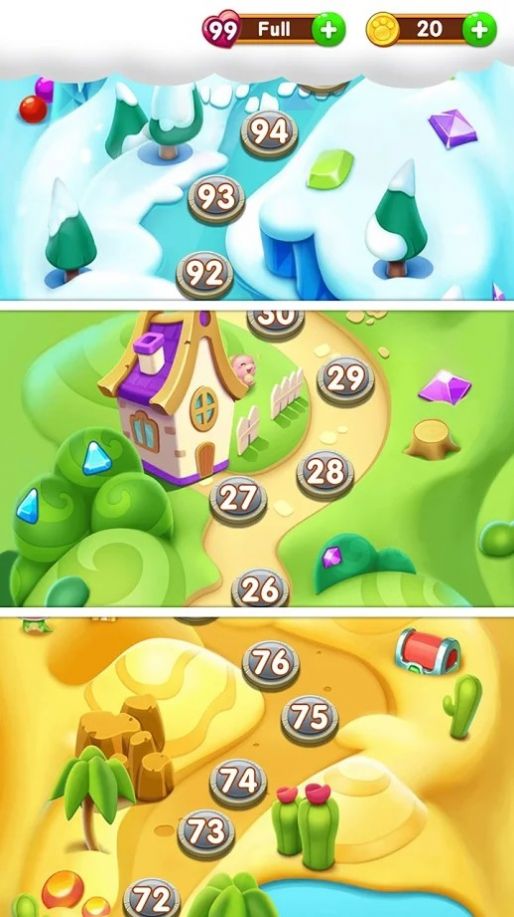 2.游戏的玩法比较多样,你可以利用一些小技巧来成功获取到糖果,发挥你的特点跨越障碍。