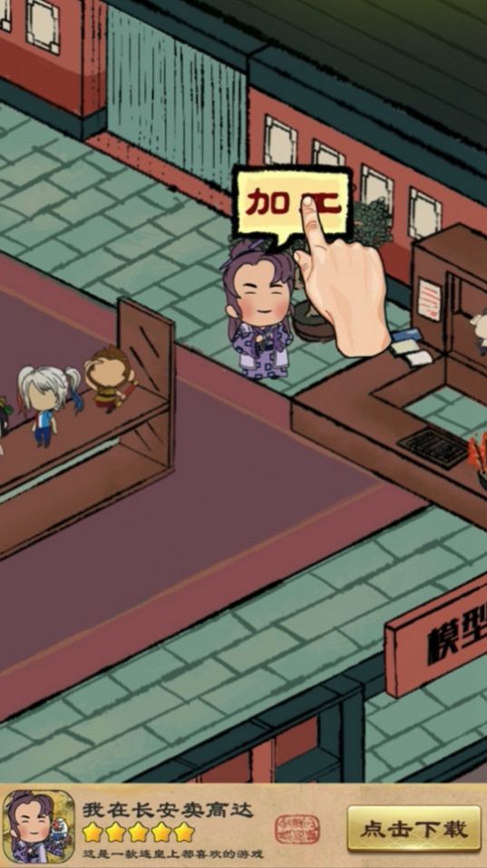 我在长安卖高达游戏作为一个模拟经营类手机游戏,游戏中玩家们能够来体验模拟经营带来的乐趣,让你在古风时代经营自己的玩具铺,通过你自己的方法来让更多的人们购买你的玩具,为你在这里创造出更多不同的财富收入。