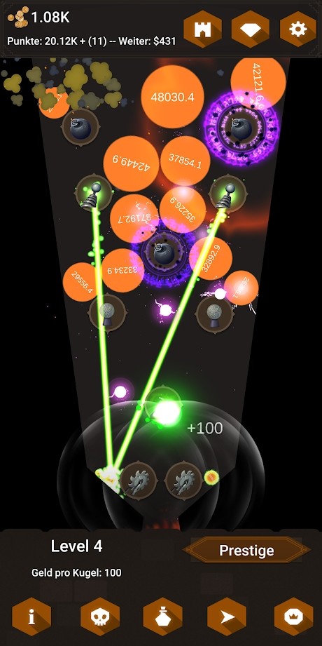 炮塔发射落下的球,每击落一个球就赚钱。解锁,升级和建造炮塔,以更快地赚钱!