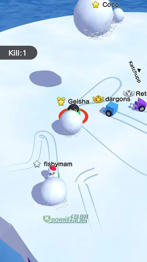 二、用你的操作快速的收集更多雪球,并能准确的攻击对手消除它们的生命;