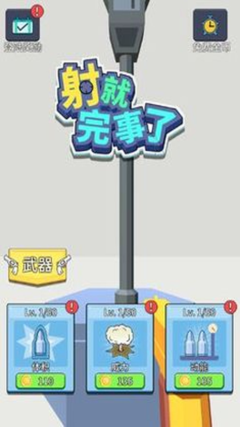 2、射就完事了游戏中拥有海量的武器类型供你选择购买强大的武器进行射击吧;