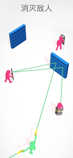 3、全民射手3d作为一款休闲动作射击游戏,在游戏中,玩家将扮演一个橡皮人,并且玩家要用枪来射击敌人,游戏玩法新颖,玩家可以直接开枪射击,也可以利用墙壁反射子弹来射击敌人,根据击杀的数量获得金币