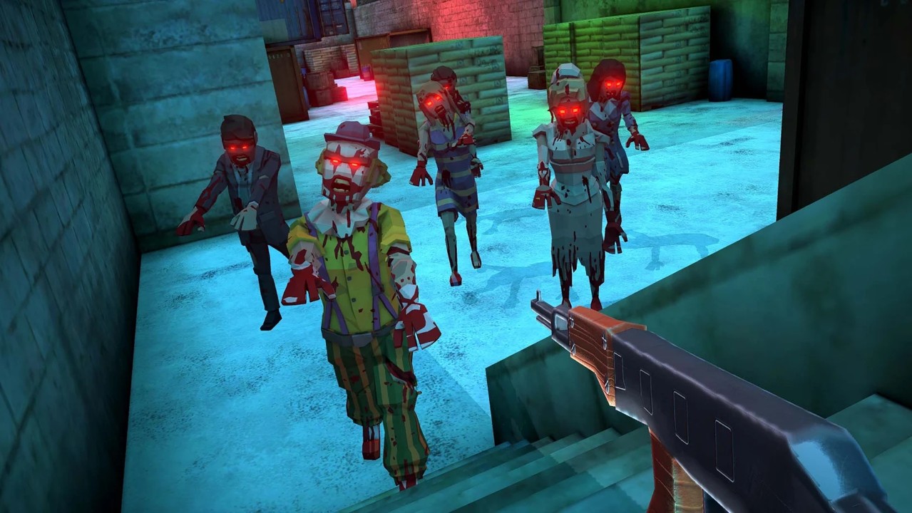 有两种具有lowpoly3d像素样式的僵尸角色的高清恐怖3d环境。该游戏具有逼真的恐怖音效和僵尸僵尸动画。