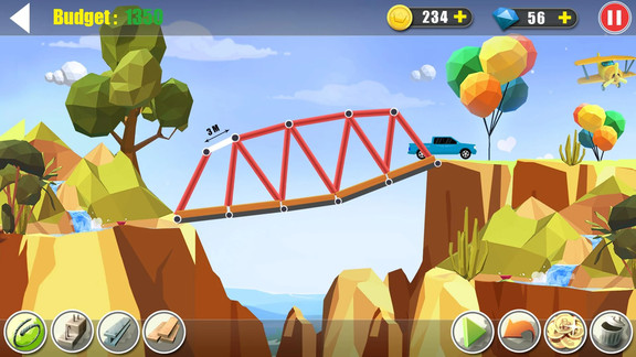 画面精美,有逼真的物理引擎,让你真切感受到真实造桥的成就感!