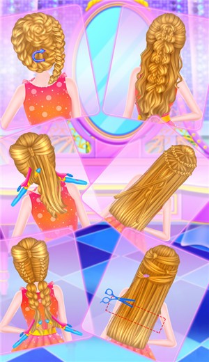 头发时尚造型设计作为一款模拟经营的游戏,头发时尚造型设计全部的画风都是卡通的,玩家可以在游戏开始的时候选择好更多的不同的颜色等去设计。选择一款编发造型,用发饰装饰编发造型。每个追求发型时尚的女孩都是很可爱的还有理想,按照步骤设计编发造型,大量发型工具及饰品,挑战你的造型天赋。操作简单清晰好玩,十分考验你的审美,充分挖掘造型潜质,玩家还能去不断的尝试更多的新的调色。