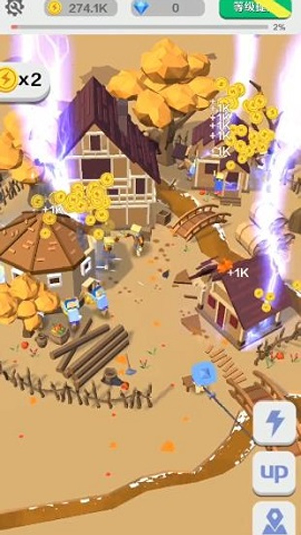 1、玩家在这里成为一个上帝,能够召唤雷电来摧毁房屋建筑;