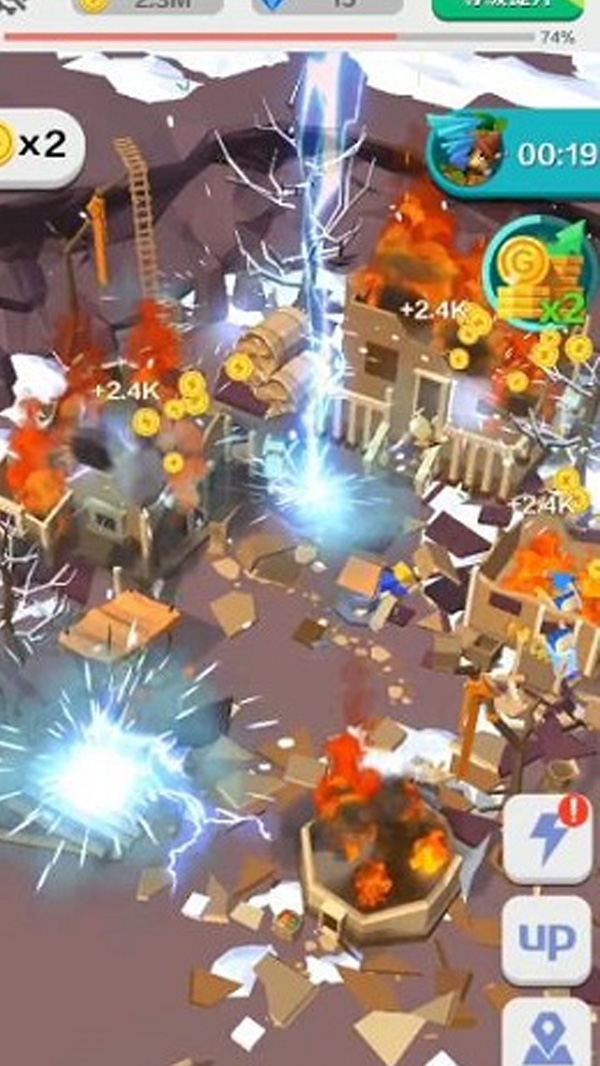 上帝疯狂了是一个很有趣的模拟上帝手游,游戏画面精美,还能进行开荒,玩法多多,在这里玩家不断召唤雷电来打击房屋赚取金币,得来的金币可以提升等级,让你的收益轻松翻倍。之后还能策略开荒,游戏过程非常的有趣,感兴趣的玩家赶紧来下载体验吧!