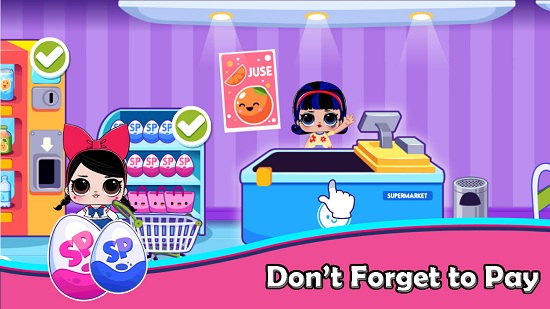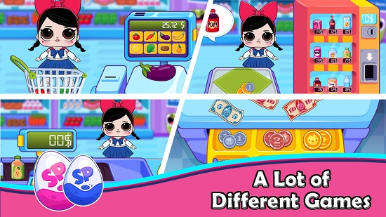 娃娃超市,玩家在游戏中扮演超市的一位收银员,需要给顾客扫描它们选购的商品,完成客户的购物结算,