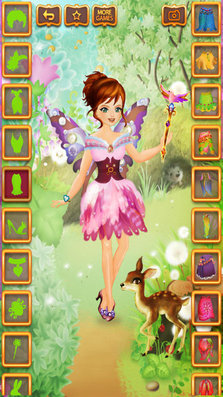 精灵换装游戏中玩家需要为精灵换上各种衣服和进行装扮,发型发色、上衣、鞋子、裙子、翅膀、魔法棒均可随心搭配,还可以自由搭配妆容和宠物,喜爱的朋友赶快下载试玩吧!