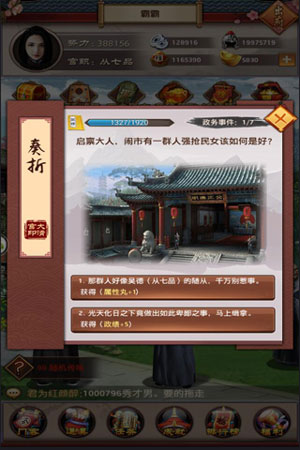 极品县令作为一个真实场景打造的宫廷类角色扮演手机游戏,游戏中玩家穿越到宫廷,玩家需要通过自己的不断努力来提升自己的官位,游戏玩法十分简单,超经典的模拟类玩法让游戏更加的刺激!喜欢这款游戏的小伙伴们快来街机中国下载体验吧~~