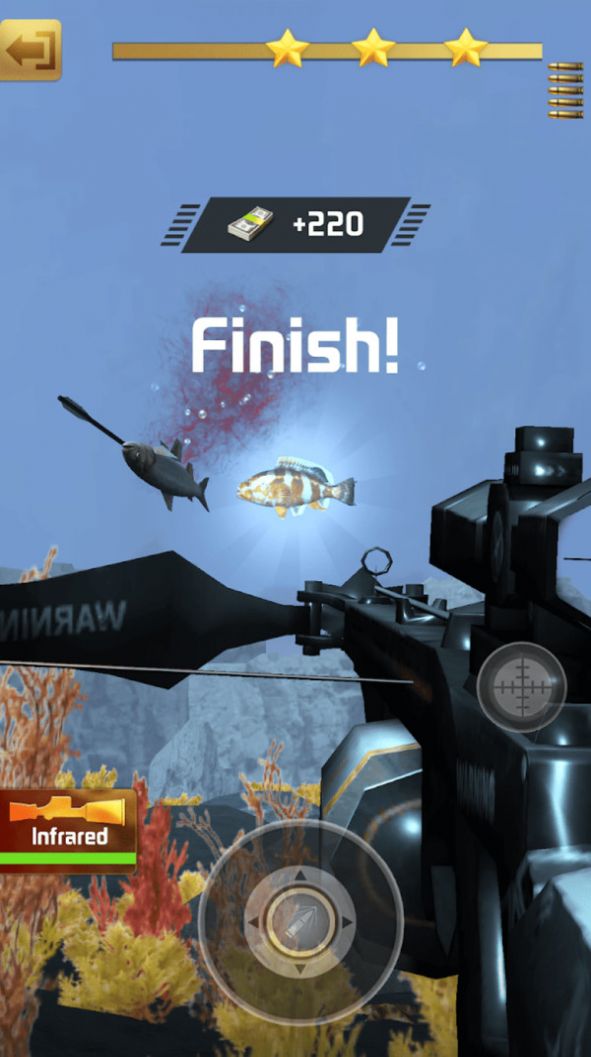 一款海洋狩猎射击类型游戏,将感受到精彩无比的玩法过程,将操控弓箭来射击海洋当中的鱼类,捕食各种不同的猎人,广阔的海底世界尽情供你挑战,不断的长大自己,掌握更多全新的技能,所有的鱼群都是你的猎物。