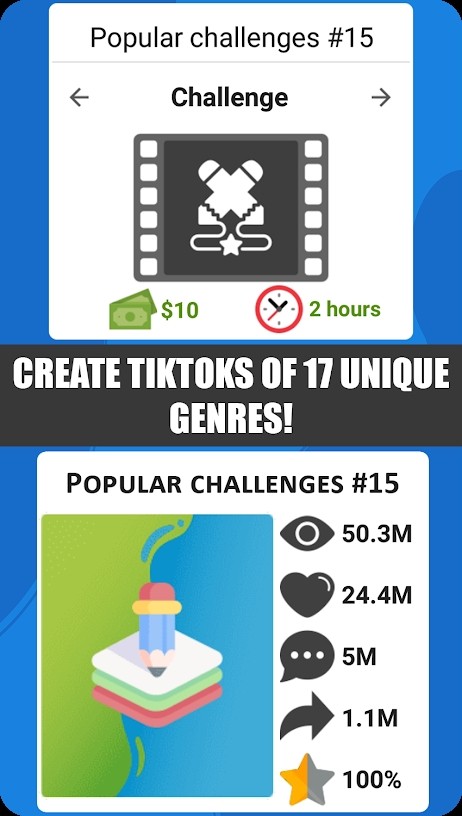 -如果您要创建tik-toks,则可以从17种流派及其独特的子流派中进行选择,这些流派也可以更改:从挑战到救生员!创建不同的tik-toks,了解趋势并成为流行的Tik-Toker!