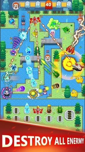 1、这款塔防游戏的玩法还是很经典好玩的,游戏中玩家们可以在自己的防御点建造各种不同的炮台形成一个完整的防御体系,不同的炮台属性也完全不同,玩家们可以根据敌人的不同调整自己的防御阵容,快来一起挑战一下吧