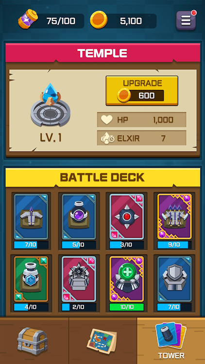 1、简单的用户界面,令人兴奋的BGM和各种角色,可以随时随地轻松便捷地享受的神殿合并防御;