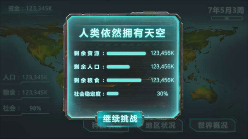 人口、粮食、社会稳定度多个维度考察你的领导能力,任一指标失控则意味着人类不再拥有未来。