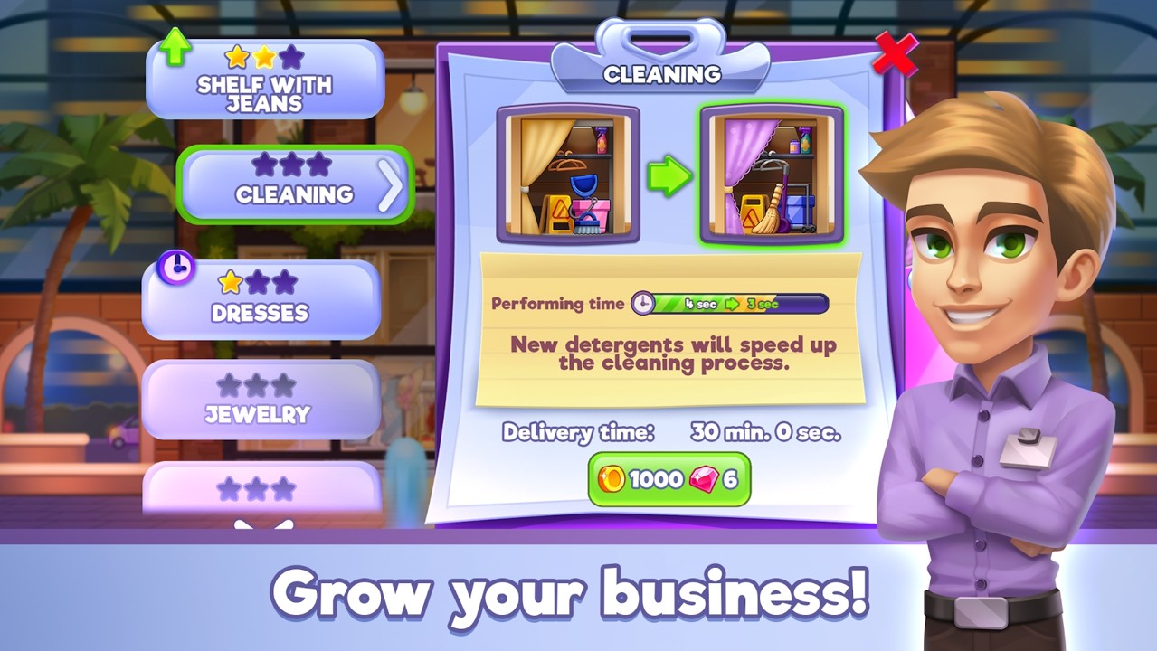 升级您的商店!订购设备并更新衣服系列,以使客户满意。产品越凉爽,您赚到的钱就越多!