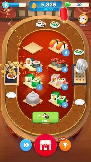 转盘寿司游戏是一款模拟寿司制作的超级好玩的游戏。游戏中采用Q版动画风格。在游戏中,玩家可以解锁各种食材使用,制作出不同口味的寿司。每天都可以获得各种免费福利,学习更多做寿司的方法。转盘寿司能让玩家快速增加寿司店的营业额,赚更多的钱,体验模拟操作游戏的乐趣。