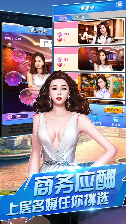 2、超多美人出入,伴您走过一路坎坷的创业大陆,缔造亿万商业帝国,而您需要做的就是安心的创业。
