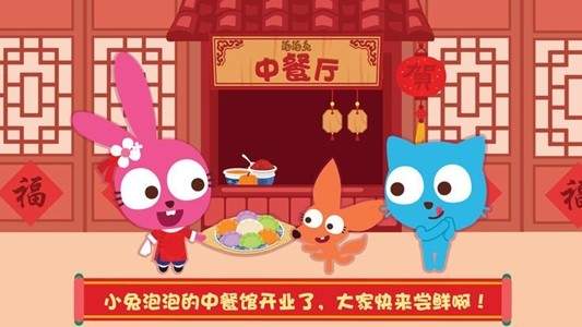 2、通过快乐游戏的过程,孩子们还可以学到很多烹饪知识,和泡泡兔同行。