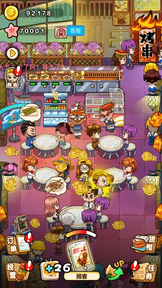 3、不断的点击屏幕来进行揽客,但揽客的同时,也要考虑下店里能不能做下,客人有没有吃好哟。