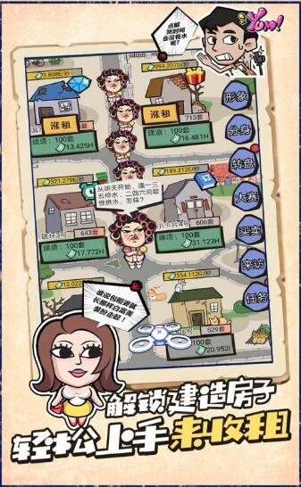 人人都是包租婆是一款带有魔性气息的模拟经营游戏,游戏以卡通风格打造,画风非常搞怪,你将成为一名包租婆每天都要收取房租,丰富的玩法有趣的内容,带你进入一个多姿多彩的经营世界。