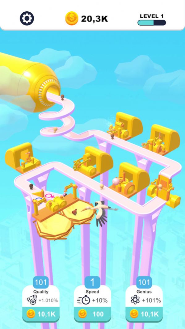空闲的婴儿工厂官方版是一款非常有趣的模拟经营类游戏,这款游戏的操作非常的简单,玩家只需要对工厂不断的升级,提升工厂的生产速度,和生产质量,还有一些可恶的飞鹤喜欢来叼走婴儿,玩家需要驱赶这些仙鹤,避免一些不必要的损失,这样才会有更高的盈利。