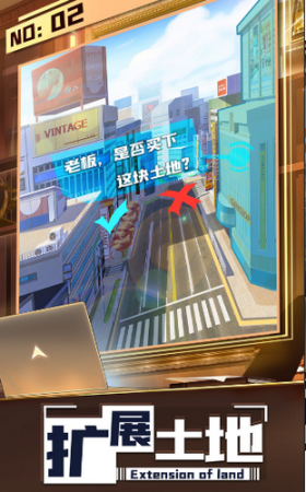 2、精致的画面风格,还原各种城市场景,可以自由收购扩大地盘;
