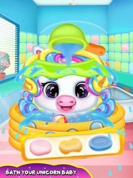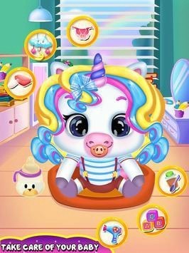 2、游戏中玩家将模拟照顾一个独角兽宝宝,帮它洗澡,喂它吃饭;