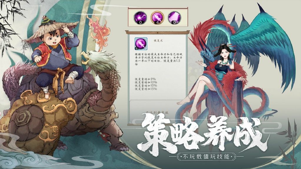 1、水墨风格的场景无比流畅的格斗快感,带给你极致清爽的卡牌体验;