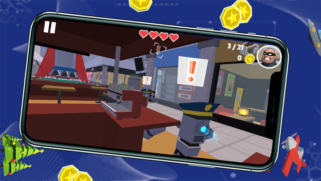 2、大批警察在城里搜寻你的踪迹,你必须能够逃脱避免被警察抓住才行。
