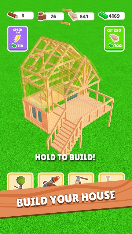 3、你使用的砍树也可以升级,切割木头的速度会更加的快,节省你大部分的时间。
