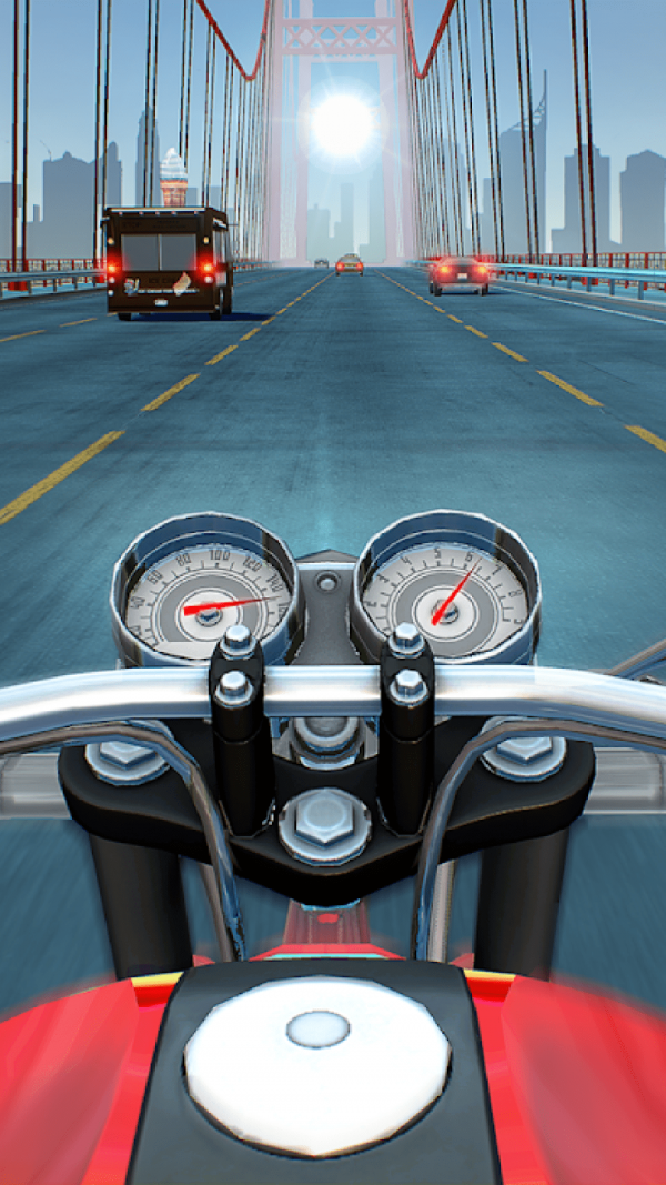 玩家们将以第一人称视角进入游戏,驾驶着自己的摩托车在道路上疾驰。