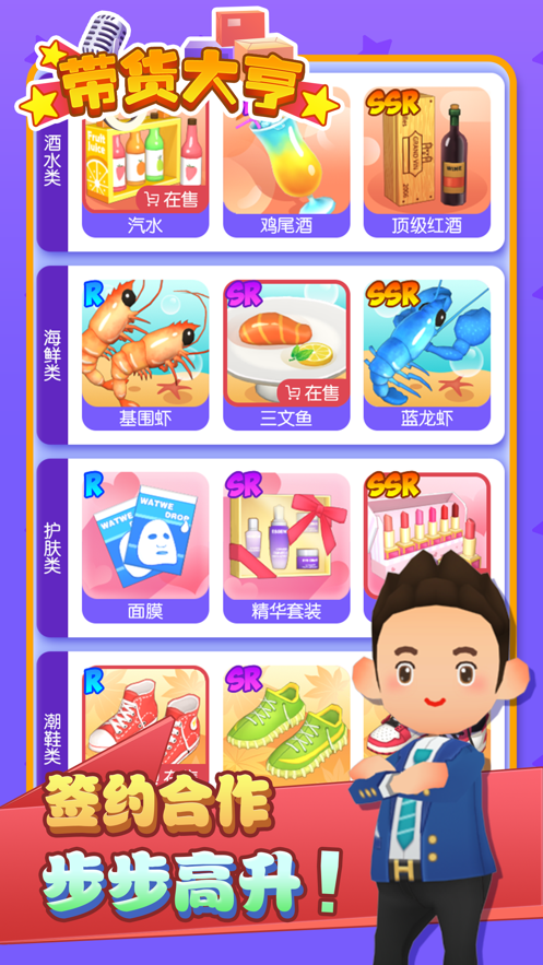 游戏中,你可以签约主播、签约商家、提升主播人气,同时还可亲自体验仓库拿货的逗趣过程;