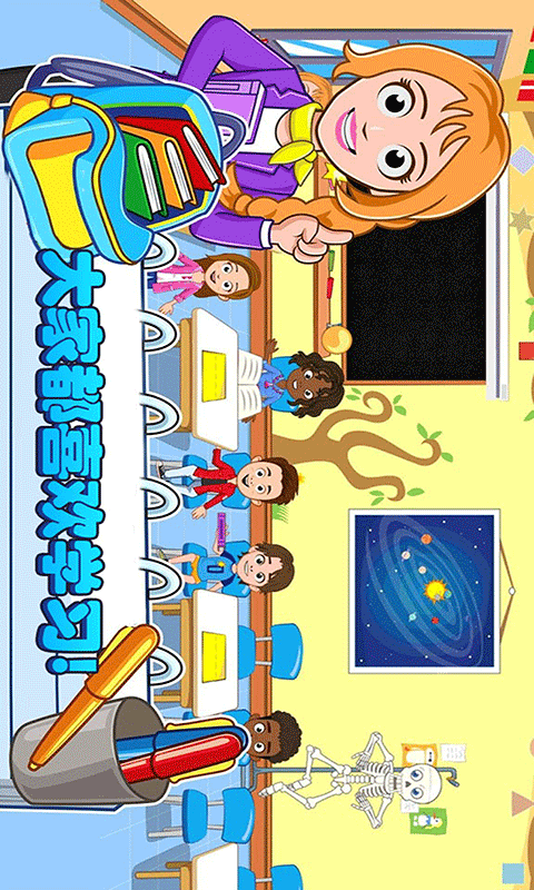 让您的孩子来我的小镇迷你校园中学习音乐,在这里可以学习音符和弹奏乐器,用钢琴和吉他演奏一些曲子或在架子鼓上制造一些噪音!在科学实验室里成为一个疯狂的科学家,不要错过前往学校操场的时间,那里的教练会教各种运动,比如网球、棒球、篮球甚至羽毛球!