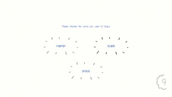下一位玩家猜出画想表示的单词,然后另一个人再把它画出来!继续循环,如果最后一个玩家猜对了第一个单词,那就有奖杯!