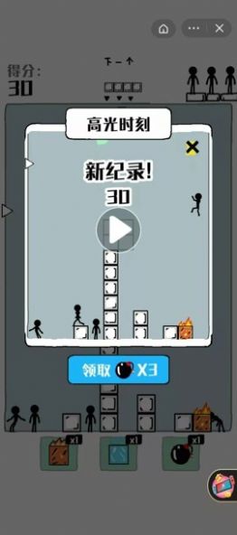 2.同时注意方块的积累,不仅要关注火柴人,还要注意破坏方块。