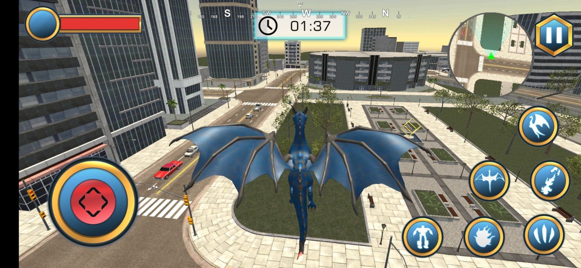 模拟飞行机甲游戏作为一款飞行冒险战斗游戏。混合了一点点的魔幻元素,将都市题材与恶龙题材相结合,我们将操控巨龙在城市之中巡逻,我们的目的是保护这座城市免遭坏人的袭击,飞行在城市上空,给予市民保护,这个城市的安全由我来守护。