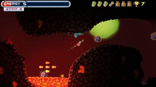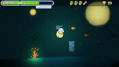 1.主角喵星人的身形圆鼓鼓的,行动全靠滚。所以,本作的操作方式也较为特别,利用手机的重力感应系统来控制左右移动,再通过点击来让喵星人做出弹跳动作。